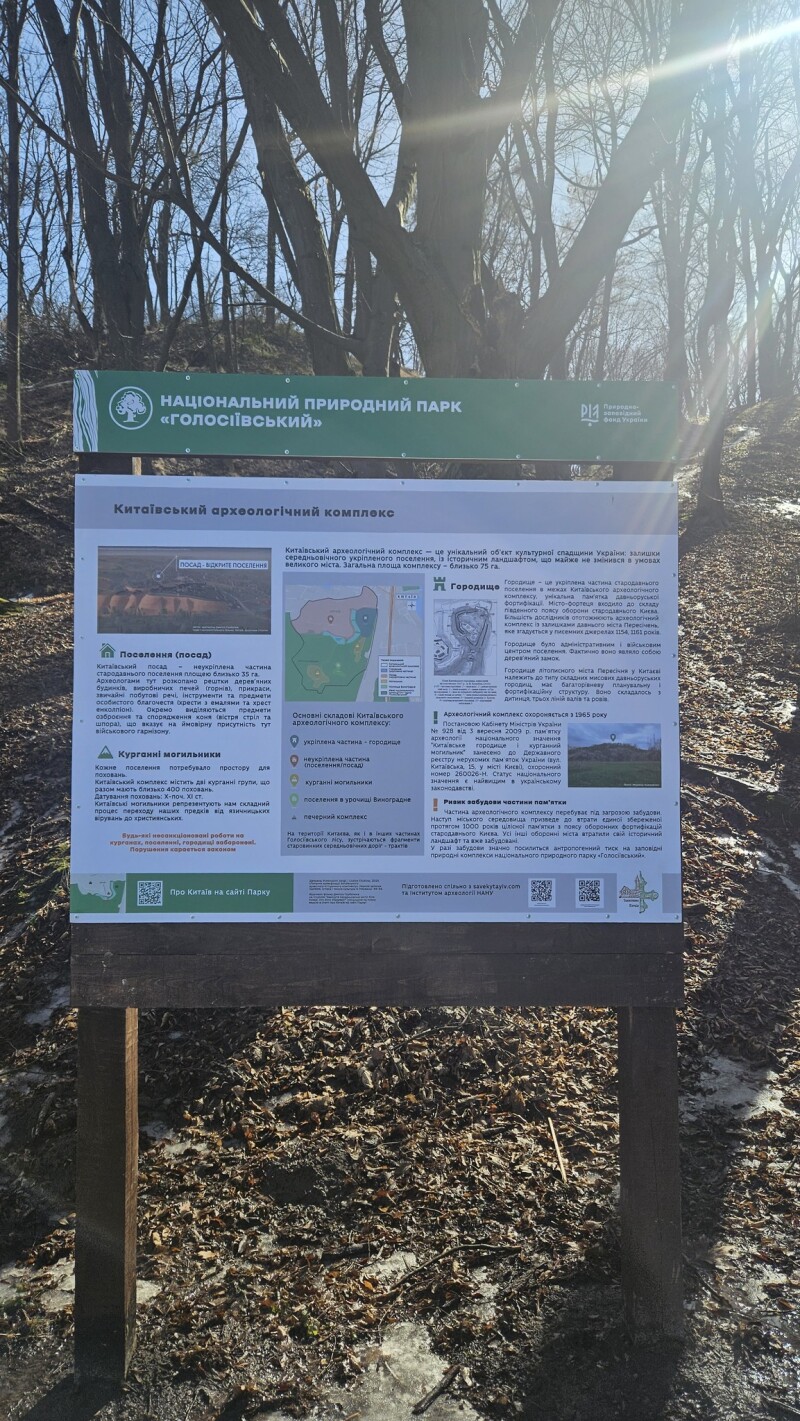На території НПП «Голосіївський» встановлено стенди «Легенди Голосіївського лісу», «Китаїв – місце, де історія оживає на кожному кроці», «Китаївський археологічний комплекс».