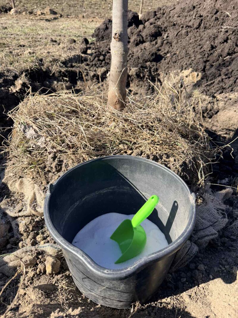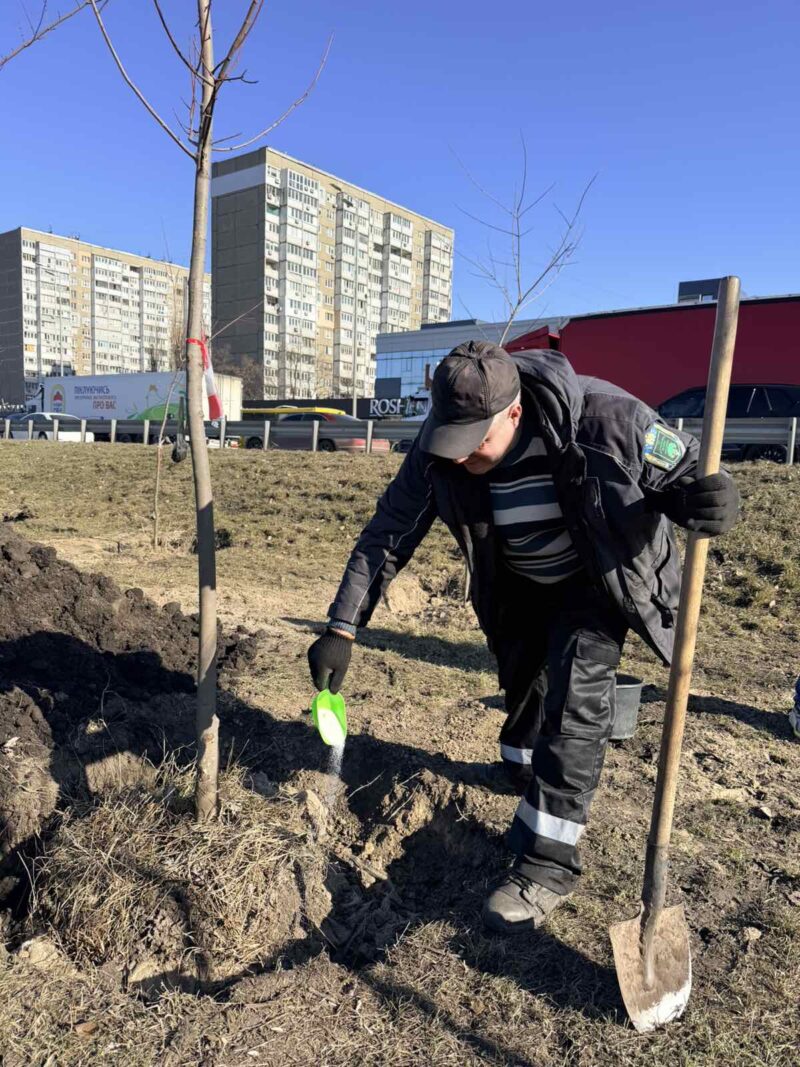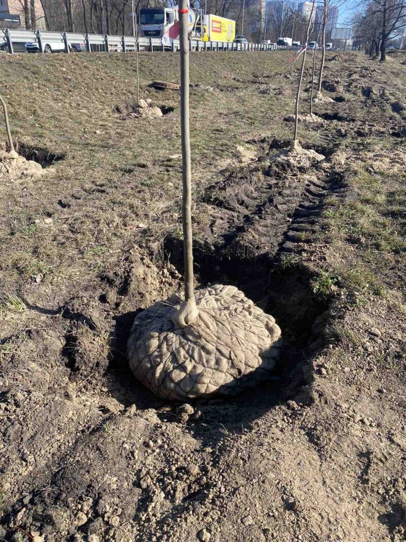 Під час висаджування дерев в лунки додаємо аквод – спеціальний водоутримуючий гель. Його основна фунція – накопичувати вологу та поступово віддавати її корінню рослини.