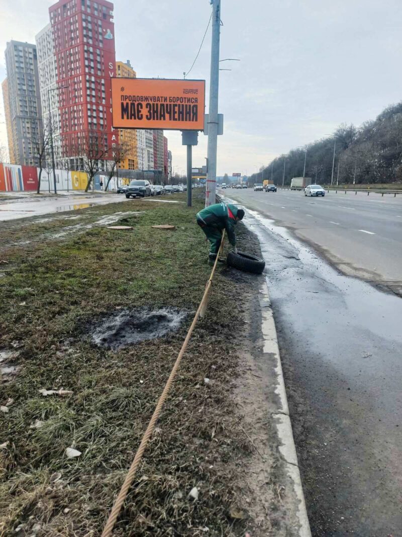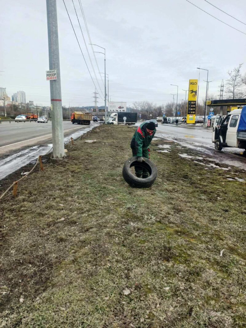 Працівники КП УЗН Голосіївського району проводять роботи із прибирання шин з газонів, адже Голосіїв має бути чистим, зеленим, безпечним і естетичним💚